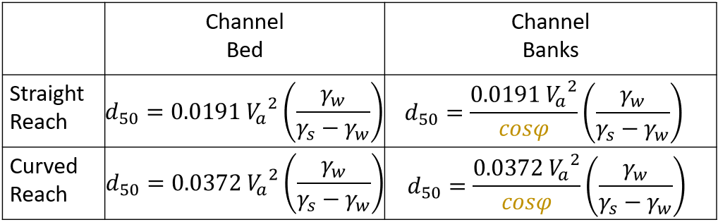 The Maricopa Method also includes special equations for several specific design conditions (e.g. downstream of a grade control or drop structure) and assumptions to extend the d50 into a gradation.