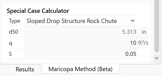 The equation computes d5o based on slope and unit discharge, so the interface expands to provide these inputs if you select this method.