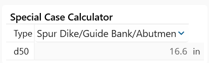 d50= the median diameter (ft), (Note, the tool convers US Customary rock diameters to inches)