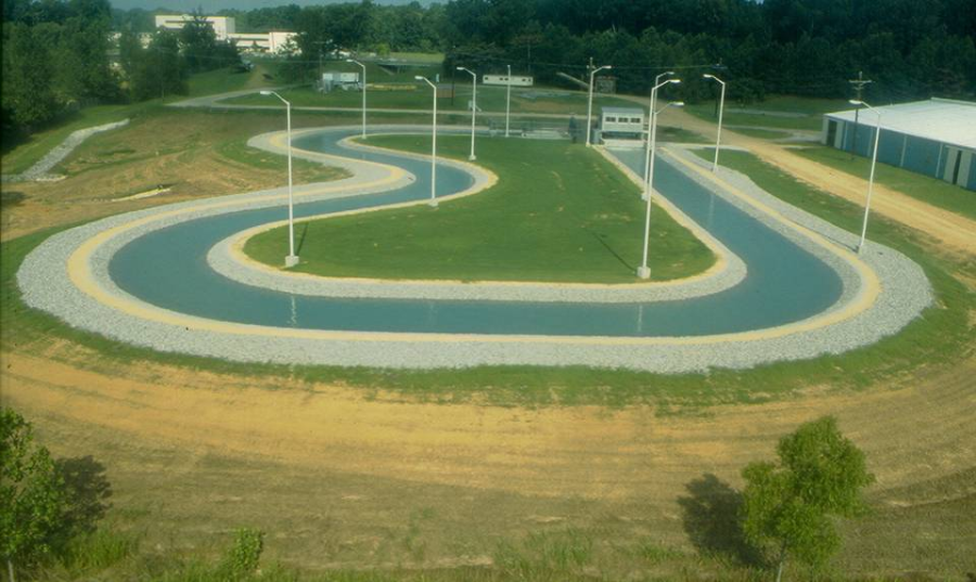 The recommended approach is based on a series of experiments conducted at the Engineering Research and Development Center (ERDC, formerly Waterways Experimentation Station – WES) Riprap Test Facility, which measured rock stability in a series of bends in a mesoscale flume (pictured below).