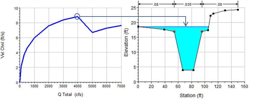 Many HEC-RAS projects are developed for flood risk management or flood insurance mapping applications.  The riprap design flow is often closer to the bankfull condition.  Riprap and scour protection features often require a new HEC-RAS geometry with hydraulic model parameters selected for reasonable estimates of project design velocity in the Riprap Calculator.  Considerations include seasonal roughness variation, expansion and contraction coefficients, ineffective flow area, blocked obstructions, looped rating curve effects, and other HEC-RAS model parameters.