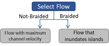 The USACE riprap sizing approach uses a different design flow for braided and unbraided systems. The first step of the riprap analysis workflow is reproduced below: