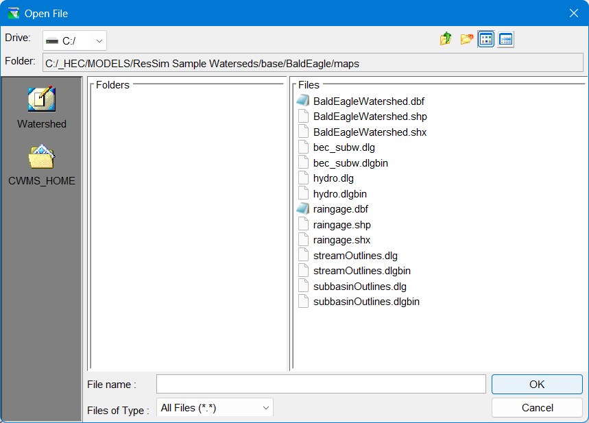 - Locate the map file you wish to use on your local computer (for example, "raingage.shp").