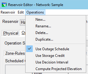 Figure: Reservoir Editor - Operations Menu - Use Outage Schedule