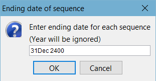 The prompt will provide a suggested date and time based on the start date and time you entered; it will include the year 3000, which is often used for generated data that is intended to be year independent.