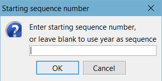 Next, you will be prompted ("Figure: Prompt for Starting Sequence Number") to enter a starting sequence number (first member ID number). You can leave it blank if you want to use the data's original year as the sequence number (most common).