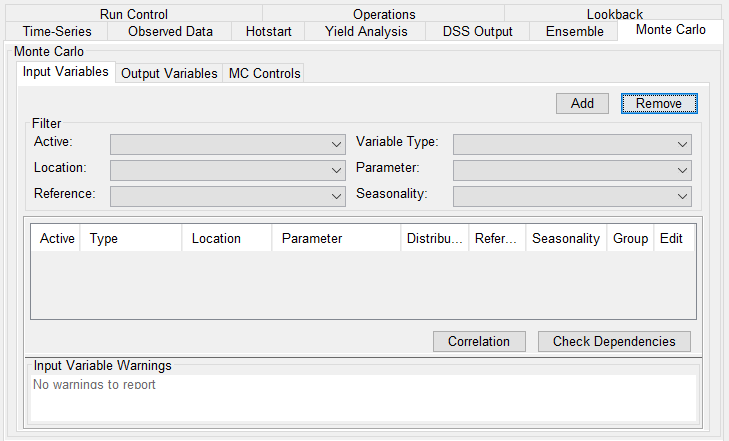 Figure: ResSim Alternative Editor - Monte Carlo Tab - Input Variable Sub-Tab