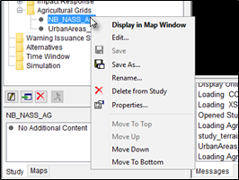 To remove the agricultural grid from the HEC-FIA project (does not delete files), from the agricultural grid shortcut menu, click Remove from Study; a Confirm Removal message dialog opens. By clicking Yes, the Confirm Removal message dialog closes, and the agricultural grid is removed from the HEC-FIA project.