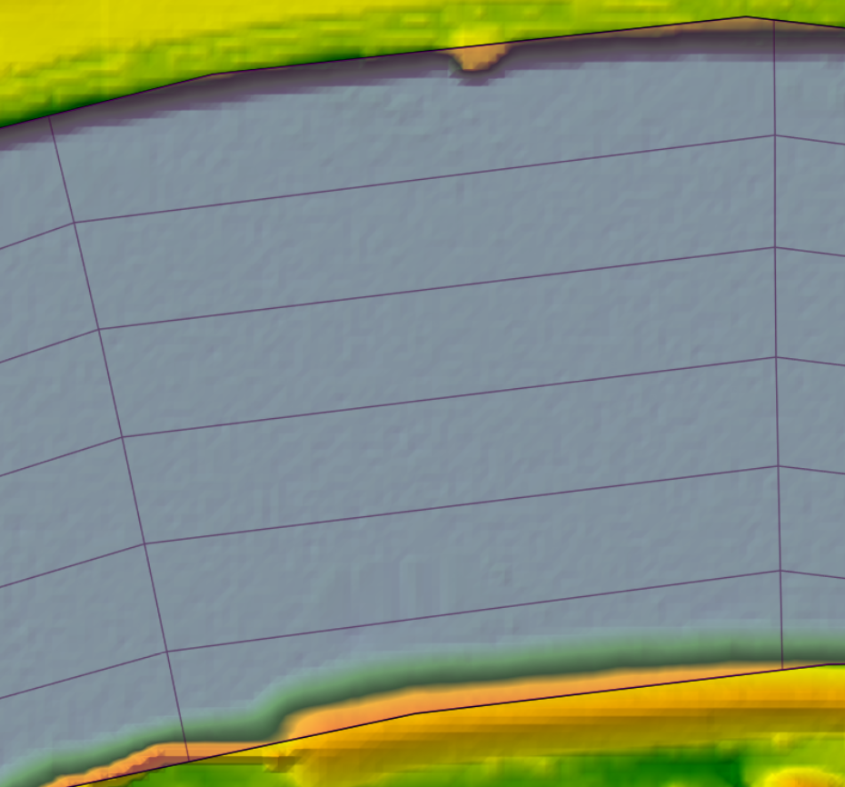- Quad: Quadrilateral cells attempt to conform to a channel, with some understanding of lateral/longitudinal directions
