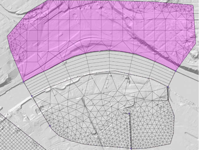 HEC-RAS 2025 has a brand new meshing system! Our new meshing system is based on a topological model, building regions from arcs and nodes. As RAS models have grown in size, it has become untenable (and quite frustrating) to meticulously move cells in order to 'trick' the mesh generation system into placing faces in the correct locations. Now that the mesh generation is face-centric, the modeler has far better control over their mesh. The key component of this design is that the modeler manipulates the conceptual mesh, which emits (after some processing) the full computational mesh. The conceptual mesh is a wireframe with metadata that informs the final computational mesh. We're hoping that this two-stage process enables users to improve and experiment with their meshes over anything possible in HEC-RAS 6 and prior.