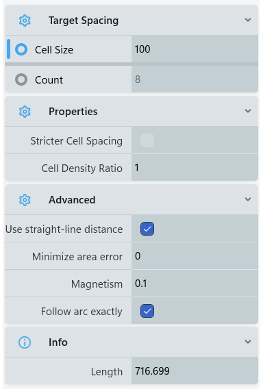 - Cell Size: Cell-size is the desired mesh cell-spacing along this arc. The option is mutually exclusive with Count.