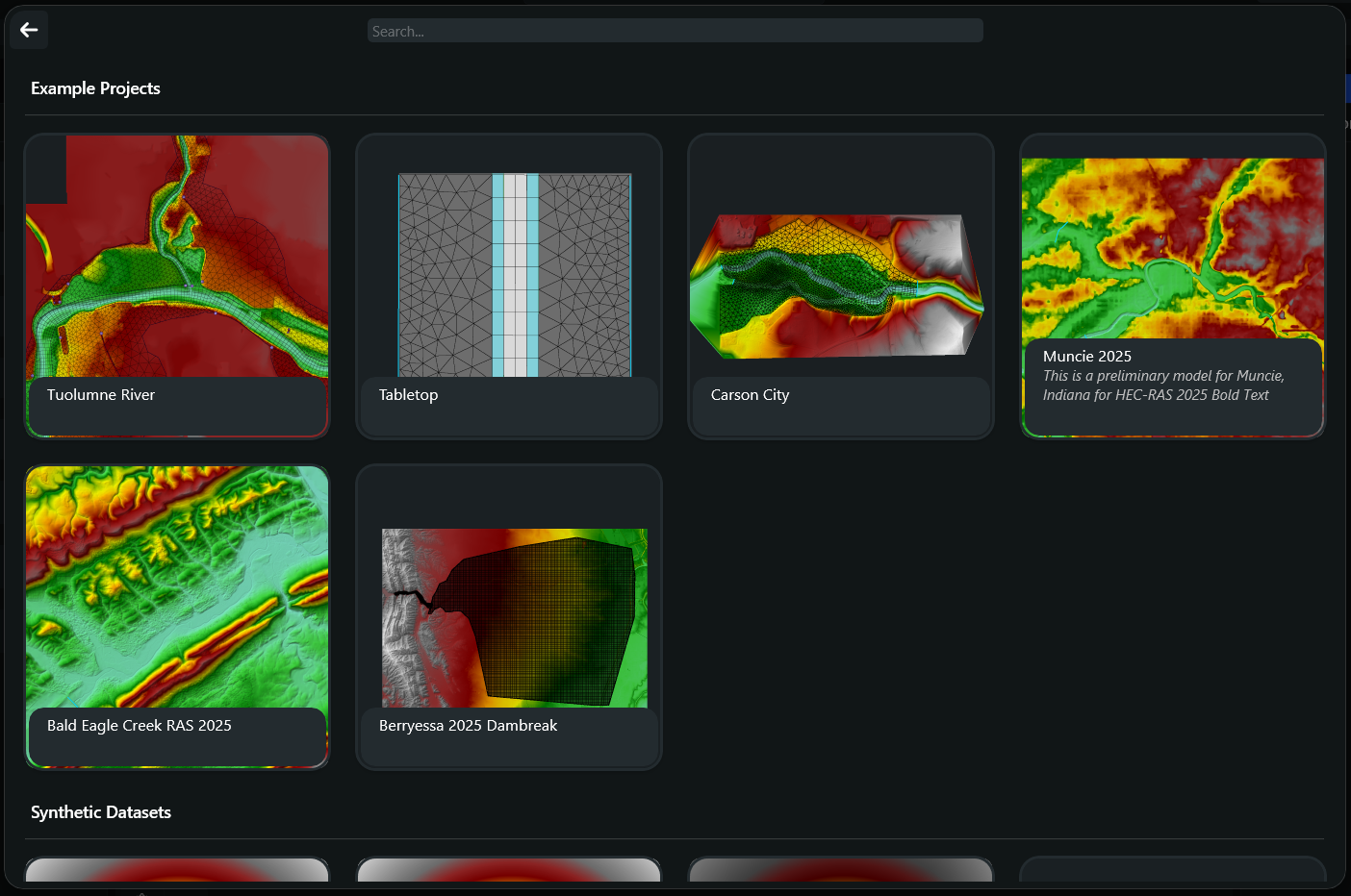 RAS can now search and download example projects directly from the UI! When you click Example Projects from the launch screen, you see this page: