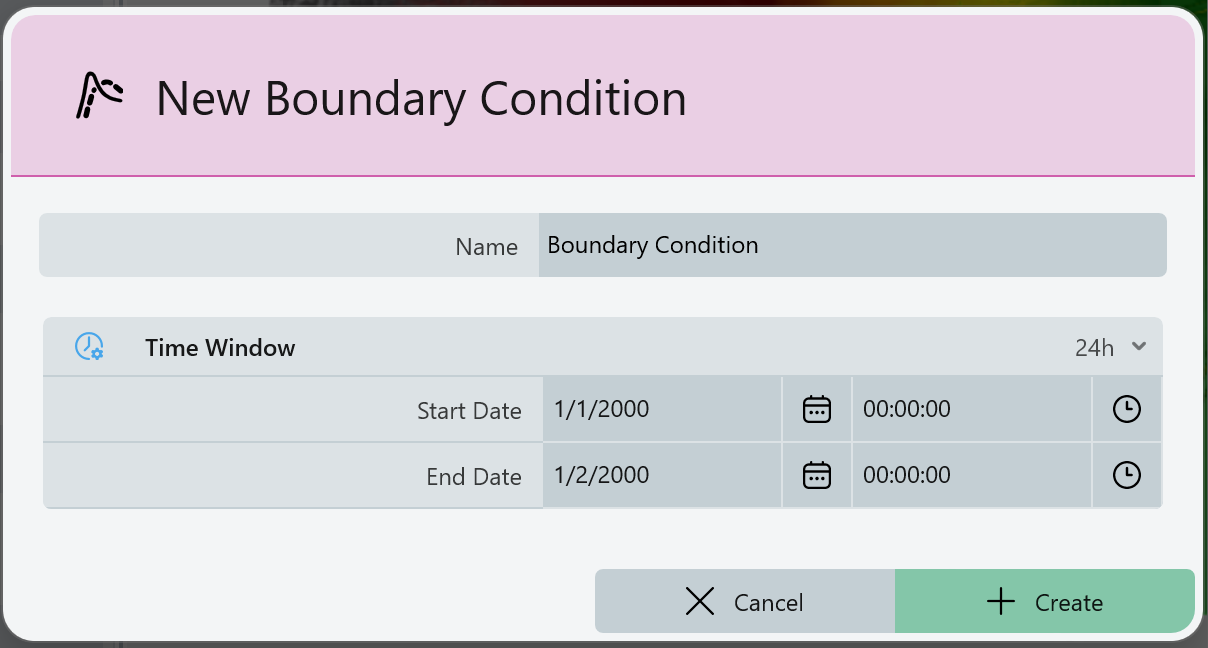Plans use the time window from their associated boundary condition layer. In rare circumstances, it may be helpful to run a subset of the full boundary condition time window, i.e. 2 days of a 14-day event. If you need this for your model, you can swap the plan Time Window Mode to a Custom Time Window (shown in the figure below). The plan time window must be a subset of the full boundary condition layer time window, since this is the range for which you have asserted temporal data. If you change associated boundary condition layers, this may become invalid.