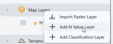 Like the terrain layer, adding an n value layer creates an empty bucket that can be modified in the Components tab. You must select between the 3 different modes provided.