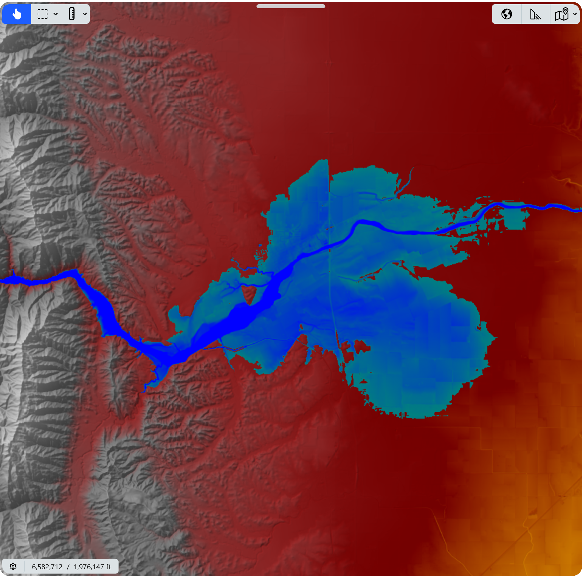 All spatial boundary layers can be viewed by enabling them in the Model pane, under their respective boundary condition layer. Temporal data can be manipulated with the Profile Slider at the top of the map window.