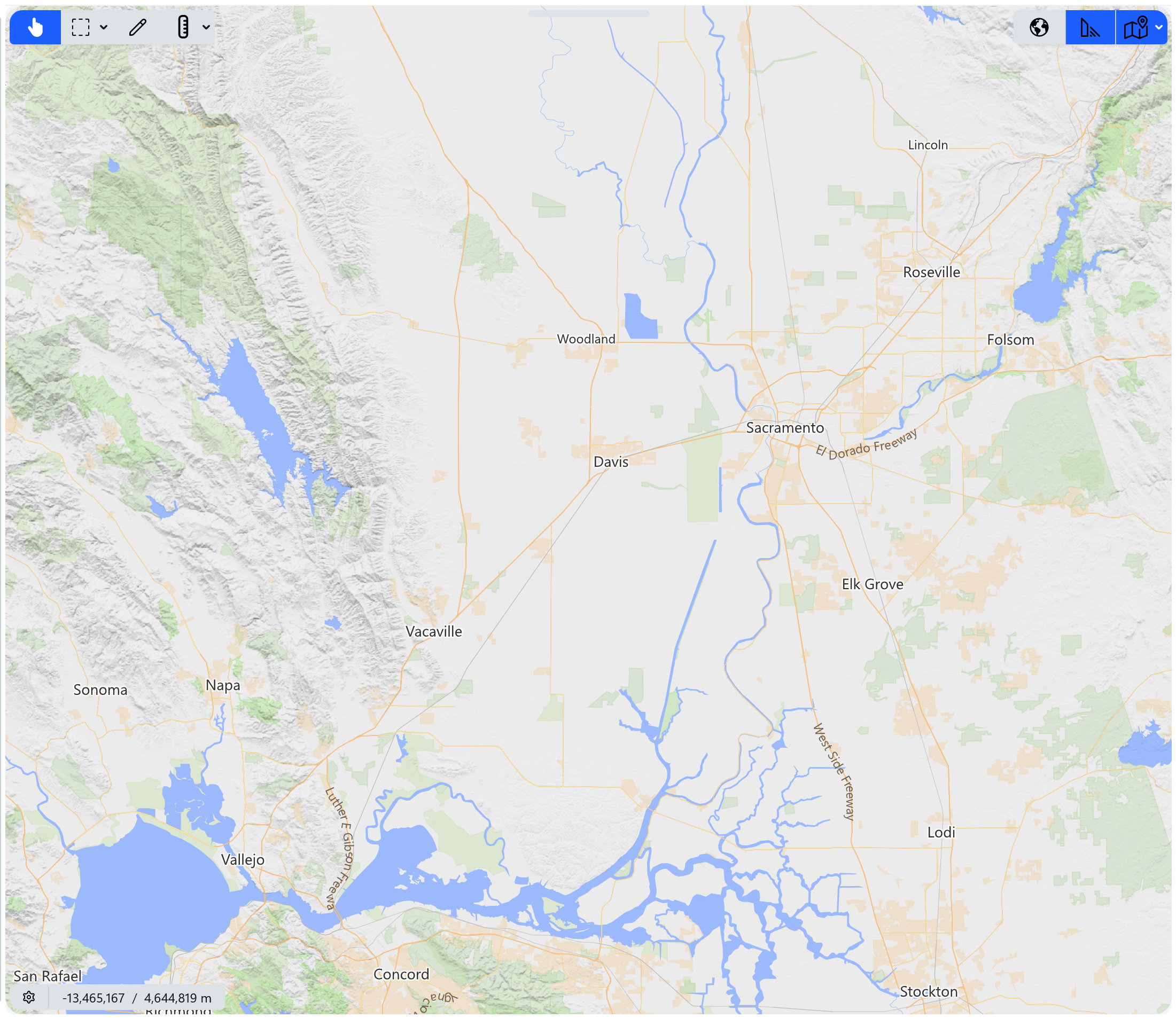 In the upper-left corner of the map window, we have our primary cursor tools. From left to right: