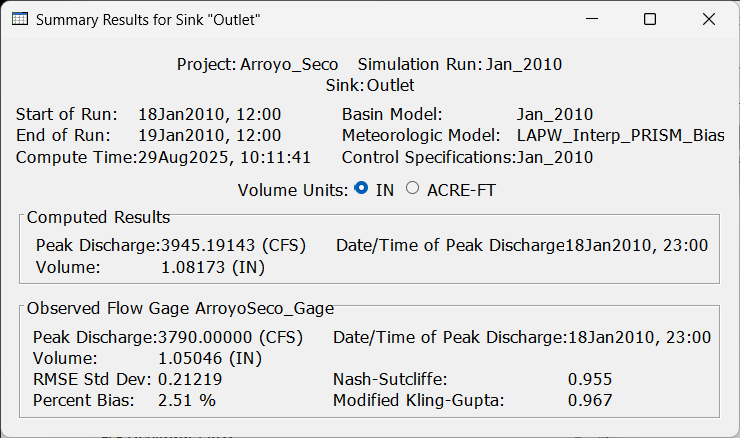 In this section, you will examine the setup and parameterization of the Arroyo Seco model. The model parameters have been calibrated to the first flood event post-fire, which occurred in January 2010.