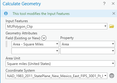- Calculate the area for each shape within the MUPolygon_Clip layer.