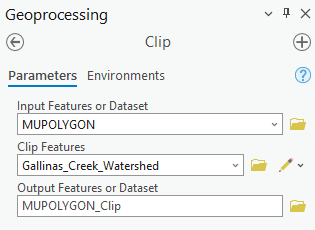 - Select Gallinas_Creek_Watershed shapefile as the clip features.