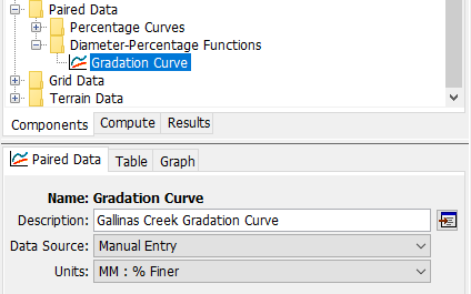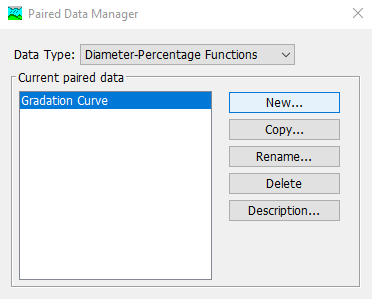 - Use when sediment methods for reaches or reservoir elements require the input of a gradation curve.