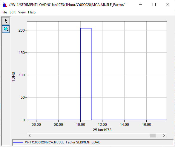 - Select the pathname: //W-1/SEDIMENT LOAD/01JAN1961 – 01DEC1975/15MIN/RUN:MUSLE/.