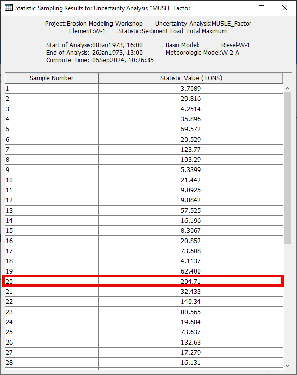 - Set up an uncertainty analysis for surface erosion parameters for the Jan73 event using the Riesel-W-1 basin model and the W-2-A meteorological model. This is done by opening Compute | Uncertainty Analysis Manager.