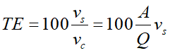 The critical settling velocity is therefore equal to the overflow rate of the pond. For an ideal rectangular pond, the fraction of particles trapped with vs less than vc is given by the TE:
