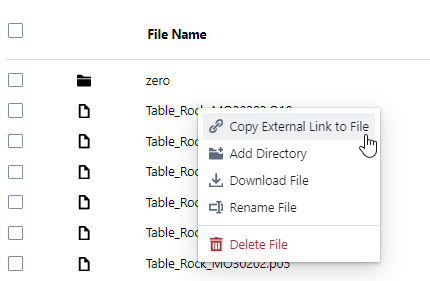 The model library allows for individual files to be shared with non-users for a 24-hour period. To create an external link, right click on the file and select "Copy External Link to File" a status message will appear in the lower right corner. You can now paste the link and it will be valid for 24 hours. Anyone who receives the link will have access to download that specific file without a model library login. The link is only valid for 24 hours from when you create it.