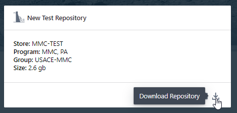 From a repository card, you can download an entire repository. Consider the size of a repository, your bandwidth and available storage before selecting to download an entire repository as some may be very large.