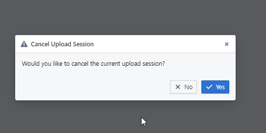 If the browser is closed during the upload process, the upload will be paused. When you return to the site, a resume upload message will be displayed and your username will be in red. If you select "No" the upload will cancel. If you select "Yes" you will be prompted to reupload your files.