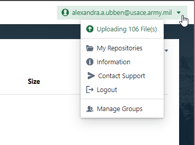 If an upload session is in progress, your username will show in green. Click the upload files tool to view the progress.