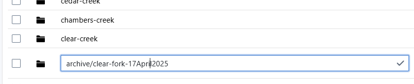 To rename a directory or file, right click on the name, select rename. An edit dialog will appear, hit enter of click the checkbox when rename is complete. Note that renaming a directory may take several minutes for the change to be implemented.