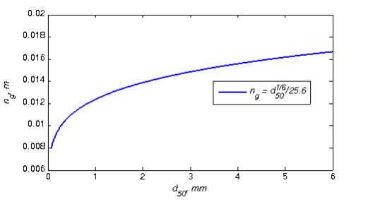 Figure 2 3. Example grain Manning's roughness coefficient following Strickler (1923).