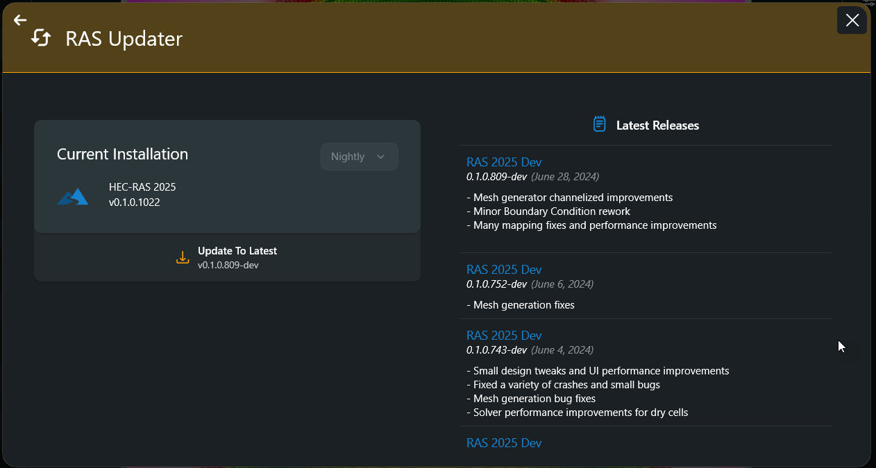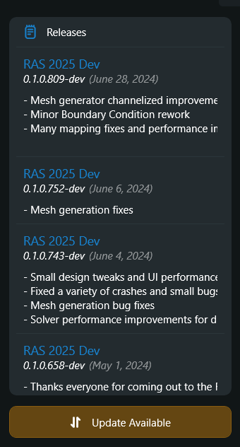 HEC-RAS 2025 Alpha is now available! Please be mindful that this is a preview release of the future of RAS - there are many unfinished and unstable corners of the software. (Images below are likely to change throughout the alpha period.) Our goal is to rapidly improve the software over the next year of development, pushing updated alpha builds every few weeks with new features and bug fixes. Please check back often, and hit that update button!
