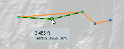 While in edit mode, a green dot appears below your cursor to indicate that you can start drawing. All new features begin with a double-click. Once you start digitizing a feature, we show a preview of the next segment with a dashed line that follows your cursor.