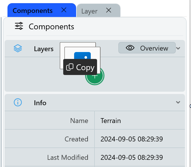 The Components and Layer tabs react to the selected layer in the Model tab. This area is still a work-in-progress, but our general organizational philosophy is that model elements (affecting hydraulic results) go on the Components tab, while visualization properties and layer metadata go on the Layer tab.