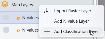 Classification layers emit a surface of discrete values. Depending on what surface you're evaluating, discrete values might represent concepts like "Open Water", "Silty Loam", or "Paved Surface". Collectively, we call these values Classifiers, because they're classifying the land surface in some way. Classifiers are mapped to physical properties (infiltration rates, n values, etc.) via an Interpretation Table.