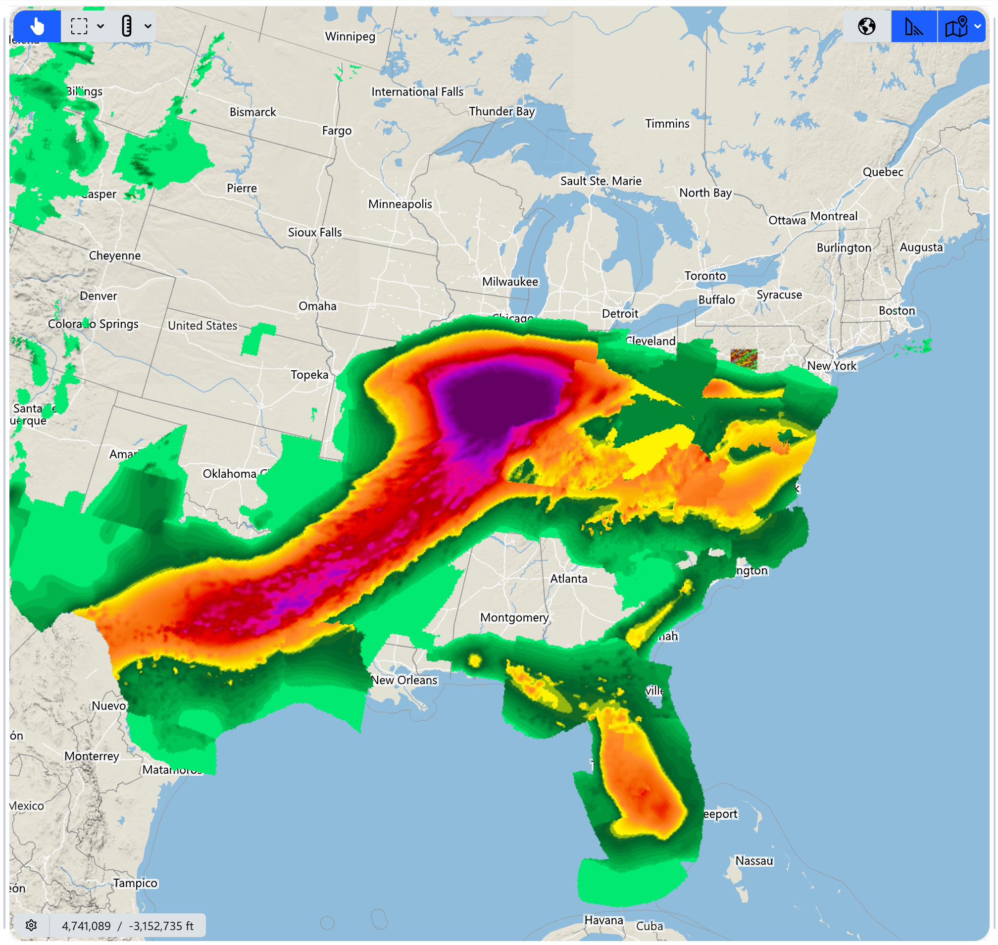 When we refer to a surface layer, we're talking about a layer where every (X,Y) spatial coordinate has a single value. A surface layer can be comprised of any number of raster or vector inputs, but these input layers have priority. If two data sources cover the same (X,Y) coordinate, then the higher-priority value takes precedence. Examples of surface layers in RAS include terrains, n value layers, and classification layers. Spatial boundary conditions (precipitation, wind, etc.) are temporal surface layers.