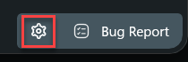 Global and project settings are available from the main launch screen by clicking the settings gear icon next to the Bug Report button. This menu is where any application-wide settings will persist.