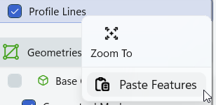 The model tab is your primary layer list for enabling and disabling layers in the map window. Many other elements in the UI react to the selected item in this list. Layers are grouped by category and file type. The root 'Project' element also has menu options for project-wide actions.