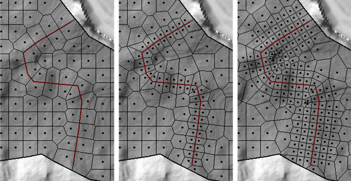 - Cell Faces control the movement of flow from cell to cell. Add refinement regions to improve the mesh by enforcing cell faces along high ground and densifying the computation points