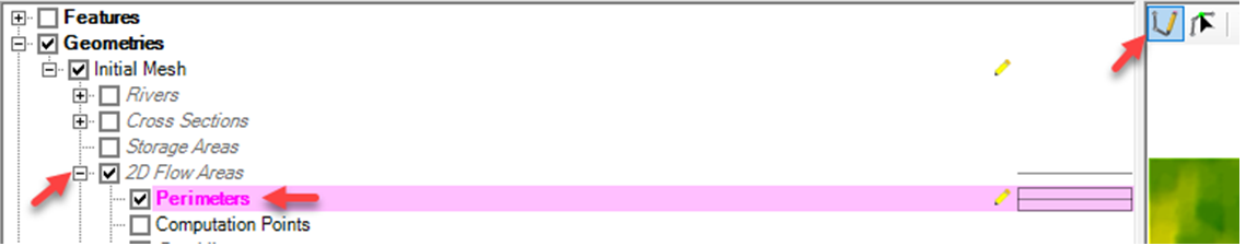 - Select the Perimeter layer (expand the 2D Flow Areas feature to find it).