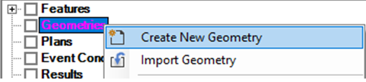 - Create a new Geometry by right-clicking on the Geometries group layer and choosing the Create New Geometry menu item.
