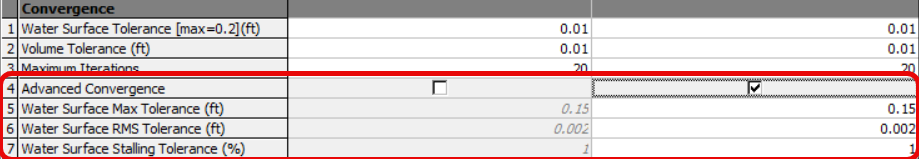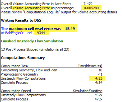 - Max cell wsel error - 0.05ft