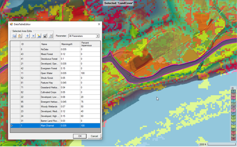 - Manning's n: Land Cover layer containing Manning's n values to use as base Manning's n values for the associated Geometry. This layer is required in order to have spatially varying Manning's n values within 2D Flow Areas.