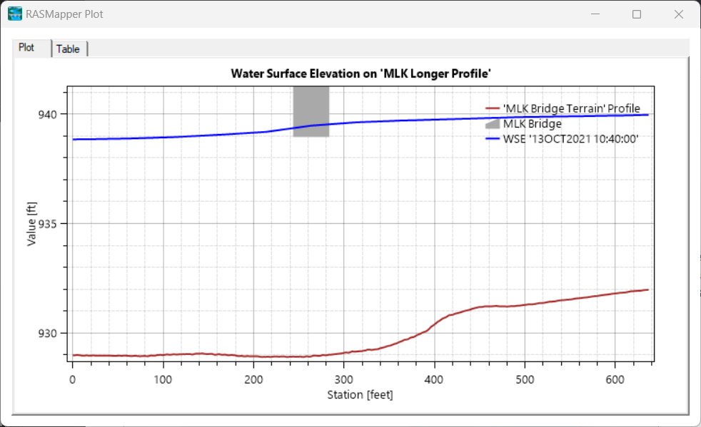 Profile plots now add hydraulic structures within the profile to show the low chord relative to the water surface profile.