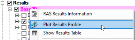 - Results provides access to information from the computation engine written to the results file (.p##.hdf). This includes such plots such as Time Series Plots at cells and faces and Time Series Plots and Profile Plots at Reference Locations.