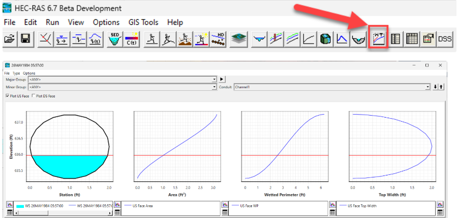 User's can now visualize the conduit cross-sections and property tables from the Hydraulic Tables menu as shown below.
