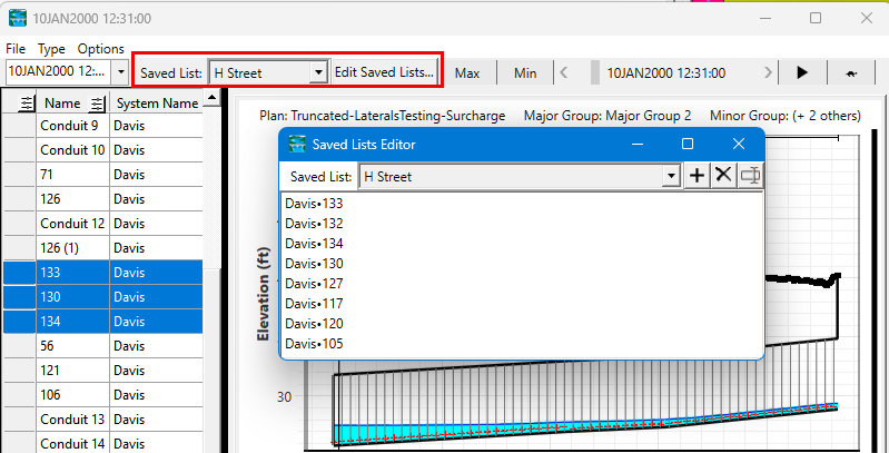 Saved Lists are now available in the pipe network profile plot allowing users to save and quickly plot groups of conduits.