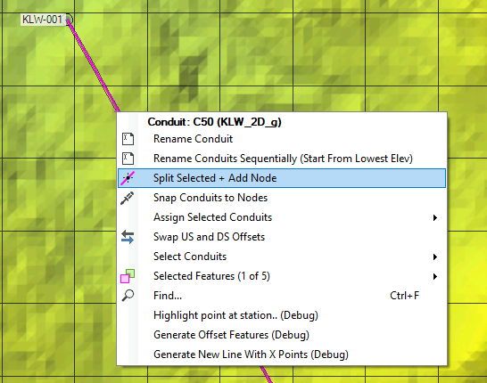 With the Split Selected tool users can choose where to split a conduit, and at that location a new node will placed along with two new conduits that maintain the properties of the existing conduit.